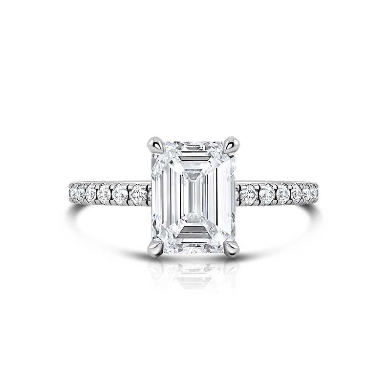 Poids du diamant:1,5 carat (coupe émeraude), 0,3 ct (rond)