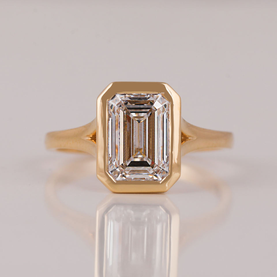 Emerald Cut Lab Grown Diamond Bezel Setting Luxueux 10Kt Gold Solid Engagement Ring Trendy Style Gift Ring for Women IGI