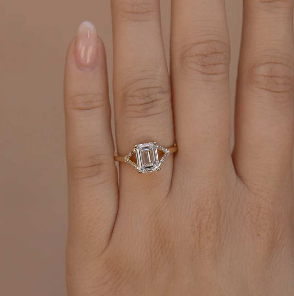 Bague de fiançailles en diamant de laboratoire, bague de fiançailles en diamant à tige fendue