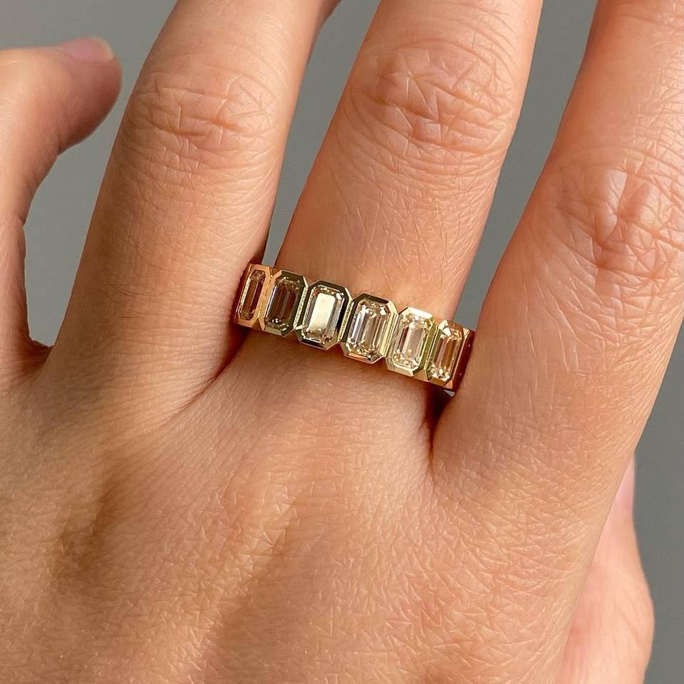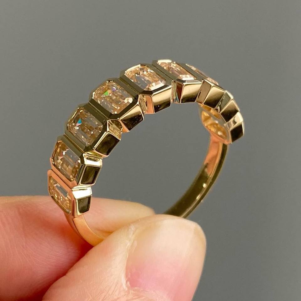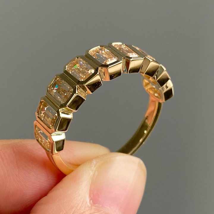 Bague Éternité en Diamant de Laboratoire Taille Émeraude, Sertie en Platine, Empilable, pour Mariage et Anniversaire, Bijoux Fins pour Femme