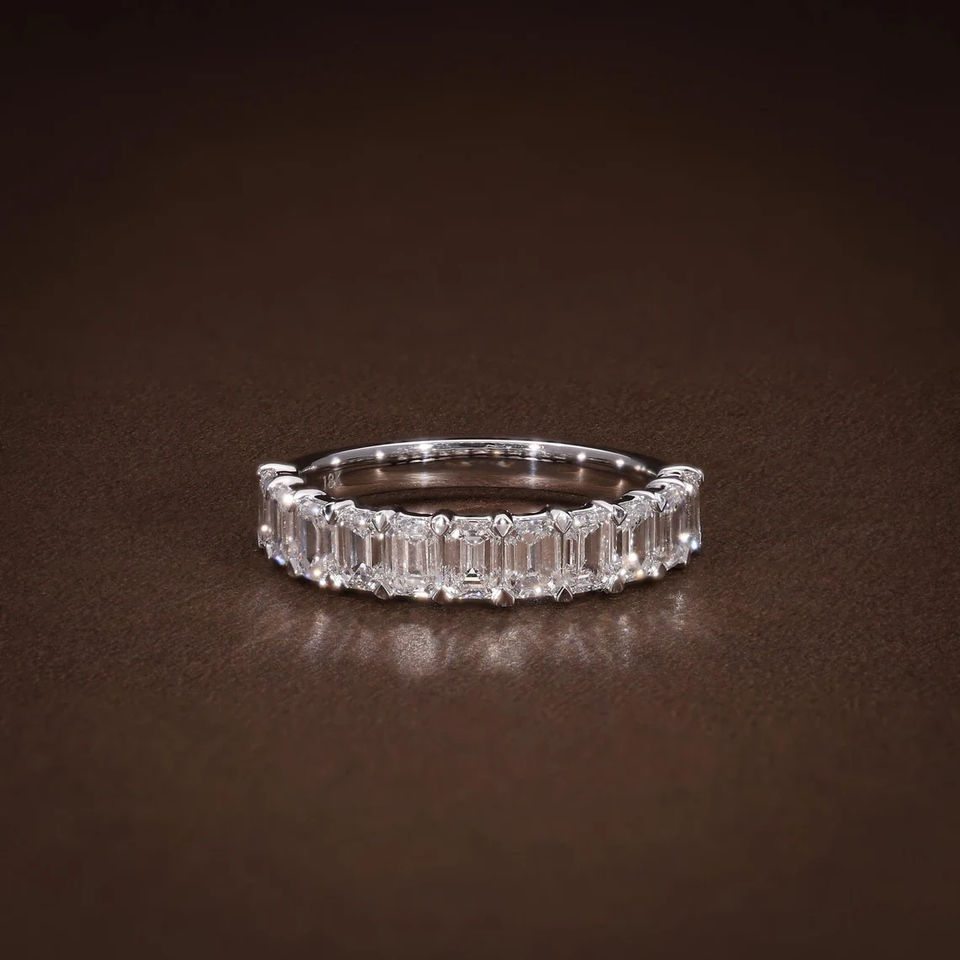 Bague demi-éternité en diamant de laboratoire taille émeraude pour femme, certifiée IGI, alliance de mariage en or 14K ou 18K