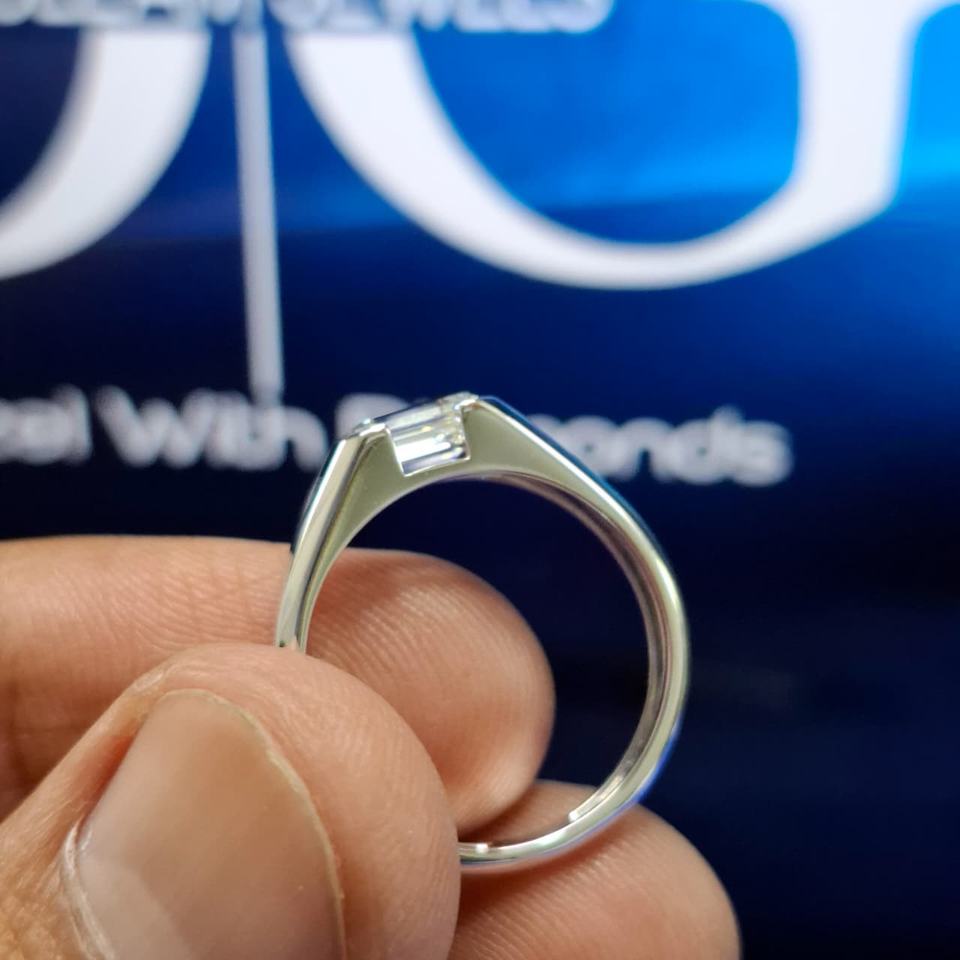 Bague de fiançailles pour homme en diamant de laboratoire taille émeraude, sertie à griffes, or massif, certifiée IGI, pour mariage et anniversaire