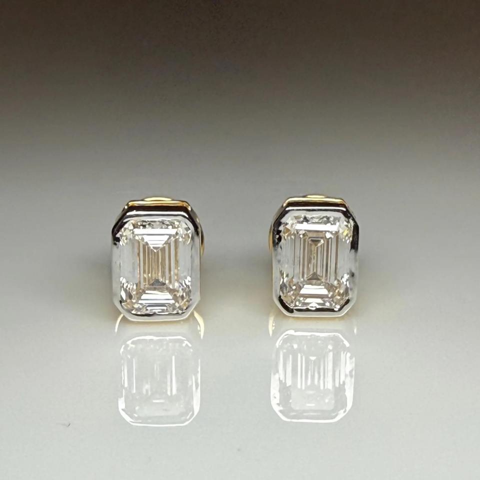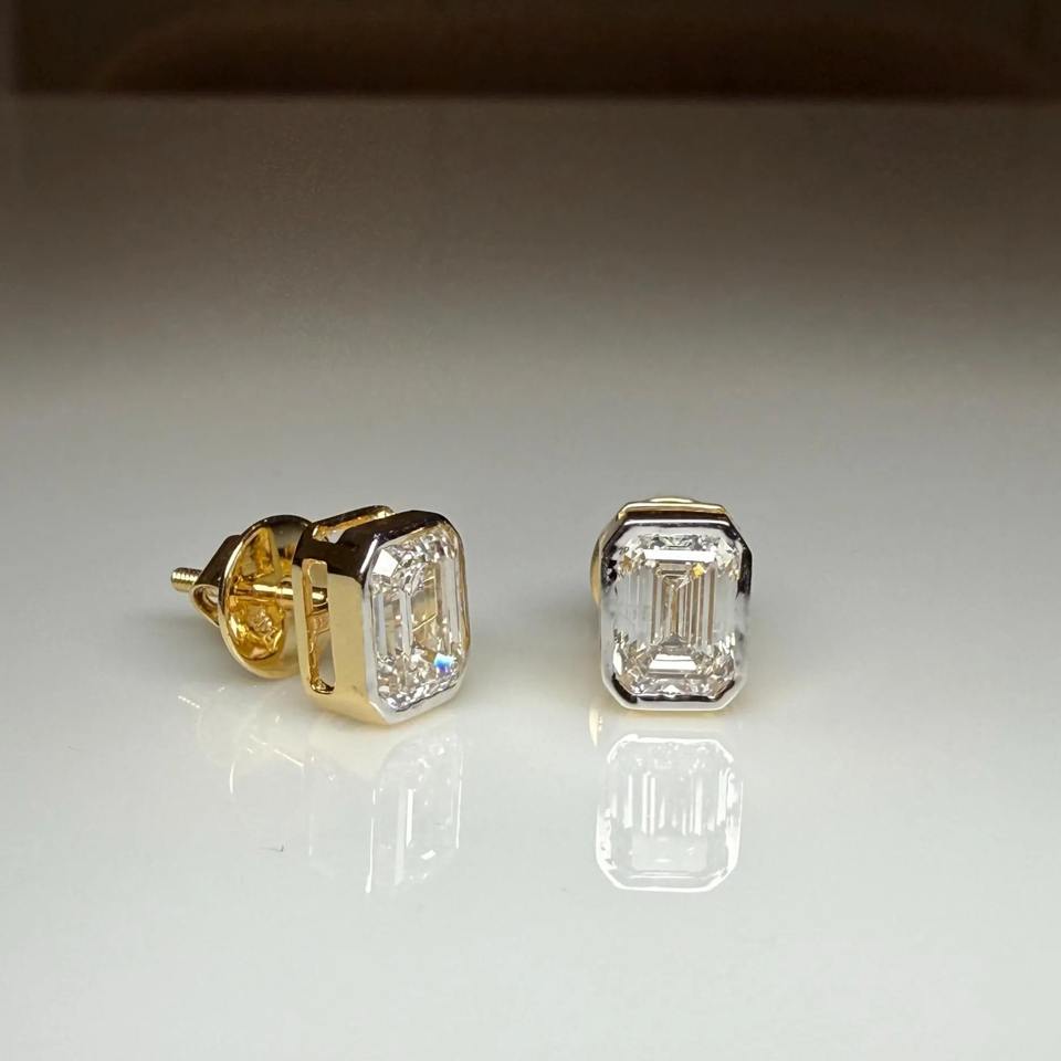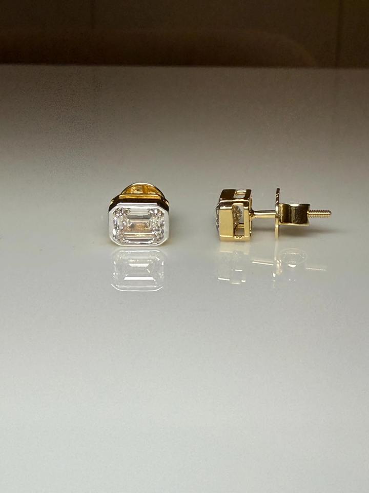 Boucles d'oreilles clous en diamant de laboratoire taille émeraude 2.00ctw, serties clos en or 14K, solitaires minimalistes, cadeau idéal pour mariages, anniversaires et soirées
