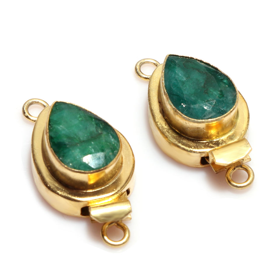 Émeraude pierre précieuse 1 brin 2 brins et 3 brins fermoir boîte ronde plaqué or 18 carats 23X12X10MM fermoir de fabrication de bijoux B750
