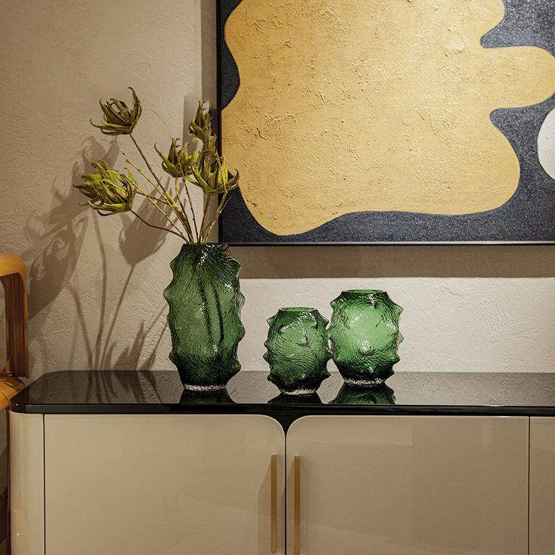 Fleur artificielle en cristal de coupe supérieure et inférieure vert émeraude avec vase pour la décoration intérieure