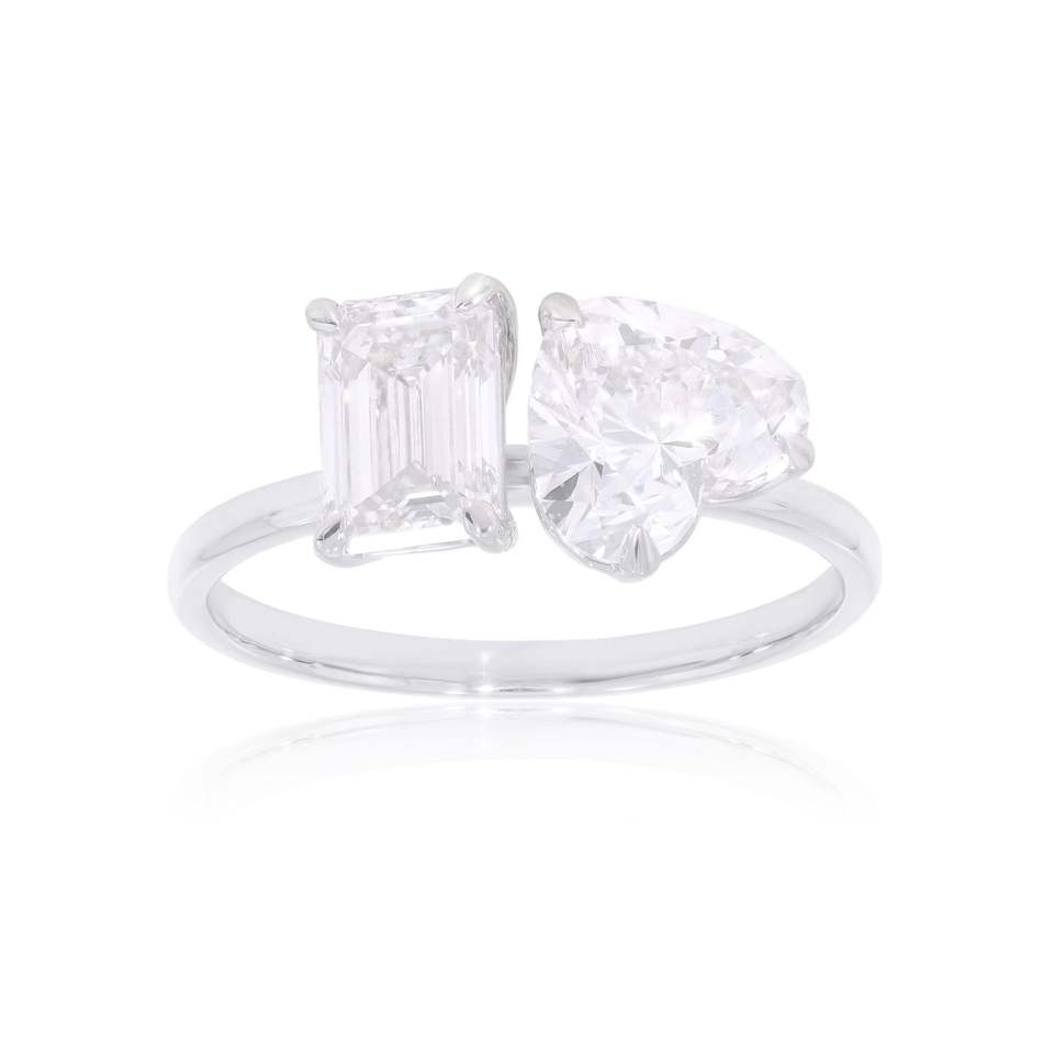 Bague de mariage pour elle avec deux pierres en émeraude et en forme de cœur