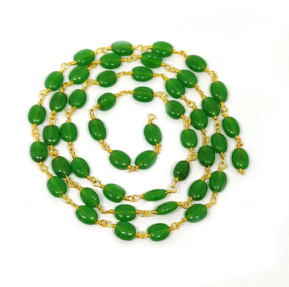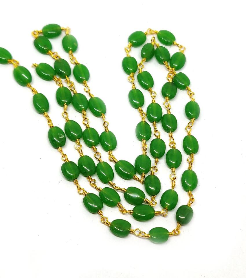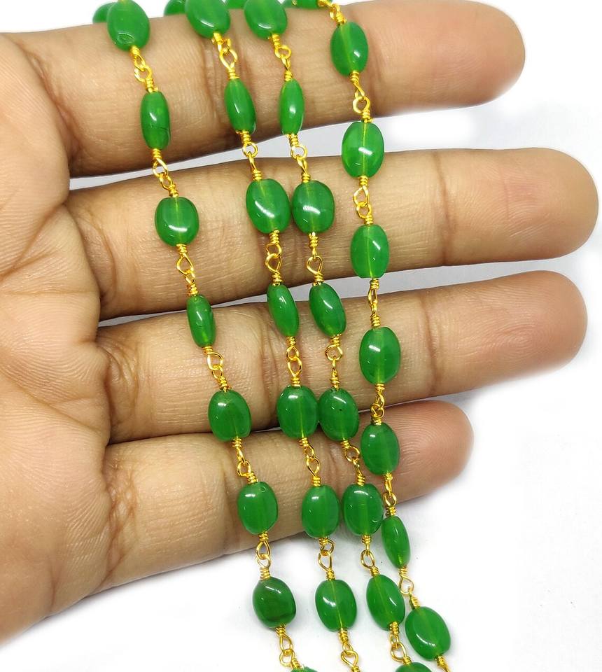 Chaîne de chapelet en perles hydro émeraude, chaîne de placage en argent de forme ovale 6x7mm, chaîne de chapelet en vrac en gros, fabrication de bijoux de 3 à 50 pieds