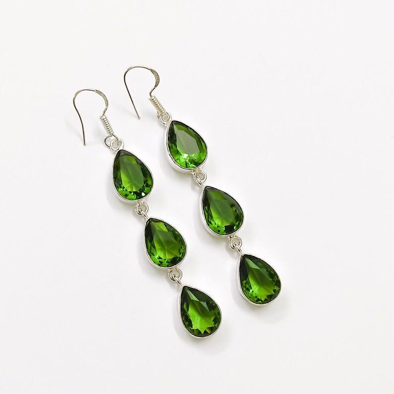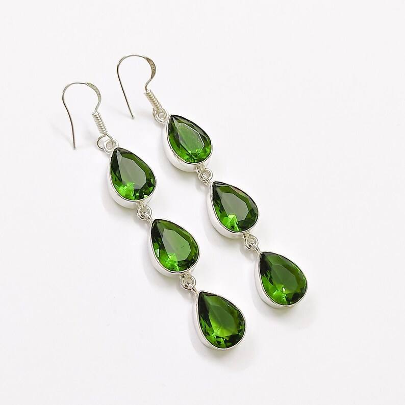 Boucles d'oreilles pendantes multi-pierres émeraude, plaquées argent 925, boucles d'oreilles en cristal, boucles d'oreilles en fil d'argent, bijoux en pierres précieuses bohèmes faits à la main, cadeau pour elle