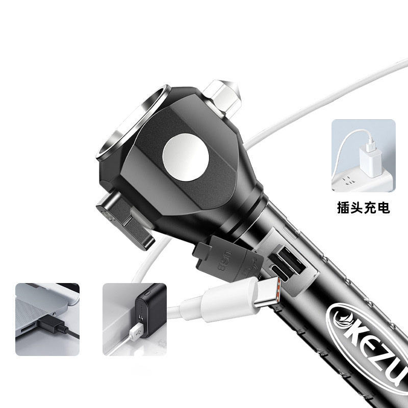 Marteau d'évacuation d'urgence Super Bright Rechargeable LED Flashlight Window Breaker Seatbelt Cutter for Car Camping Work Light