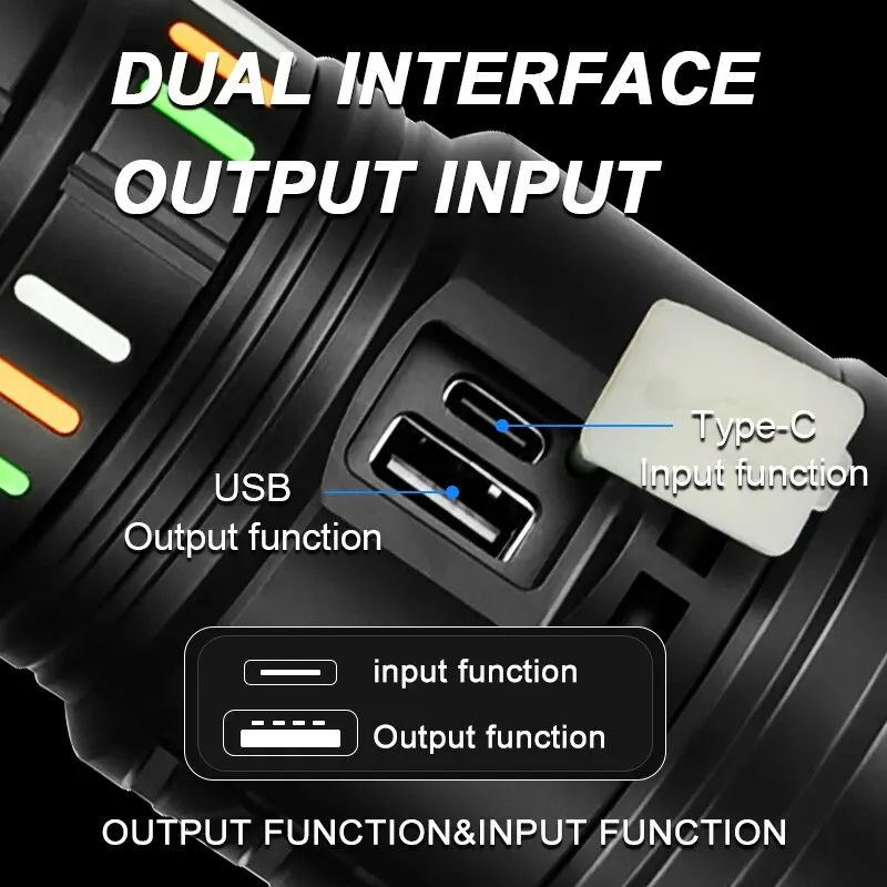 Lampe torche de randonnée d'urgence 6000lm, puissante, zoomable, LED, pour camping, pêche, recherche en extérieur