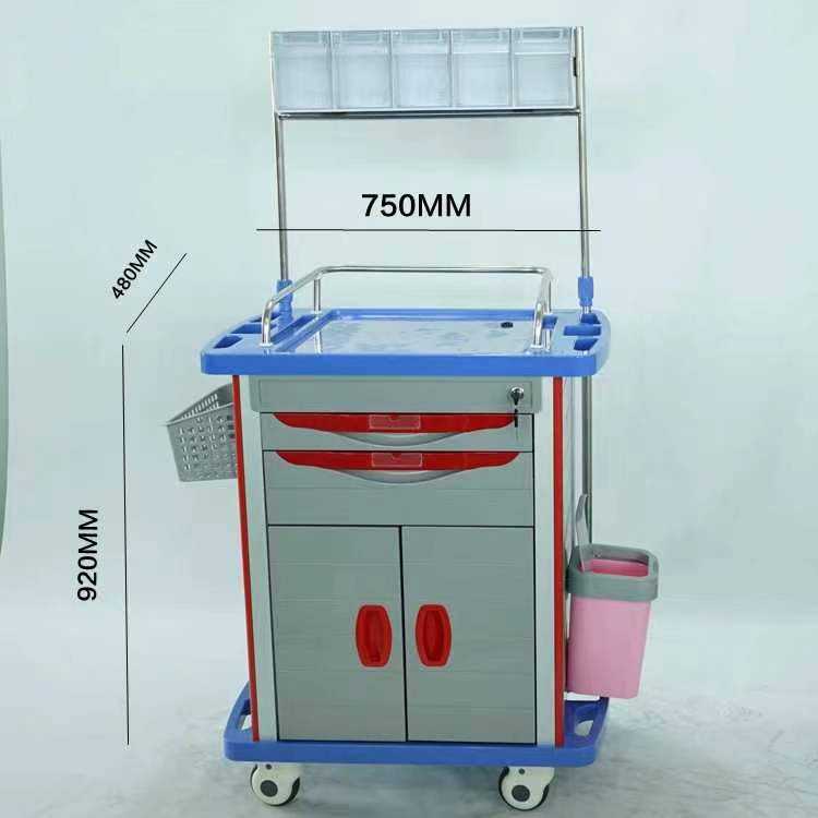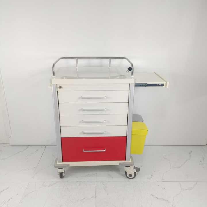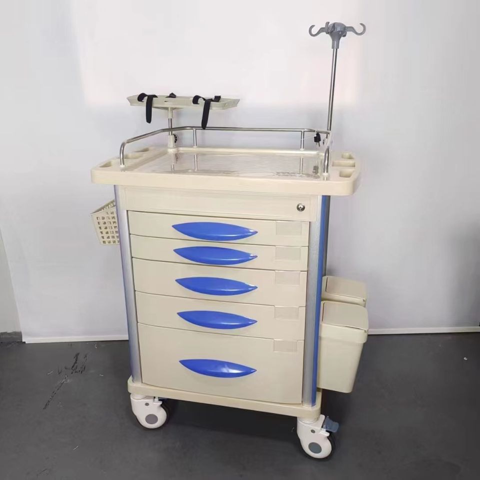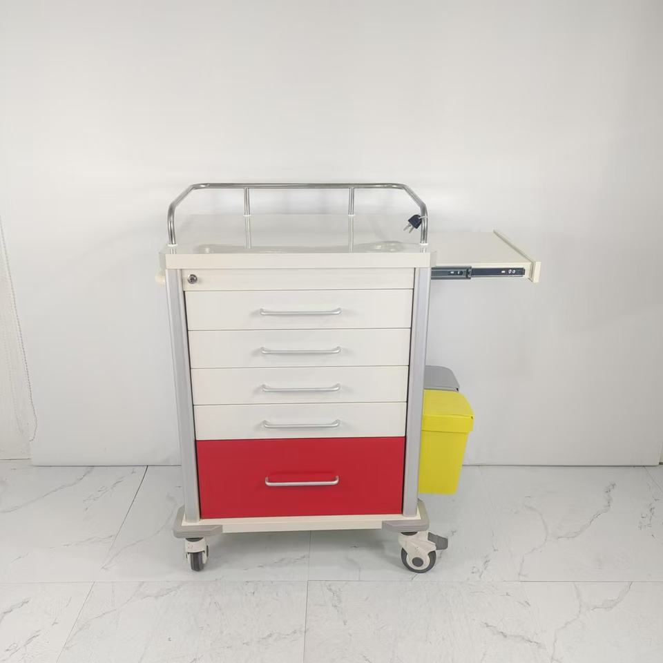 Chariot médical d'urgence à 5 tiroirs, construction en acier inoxydable, roues silencieuses pour ambulance, salle de maternité, clinique