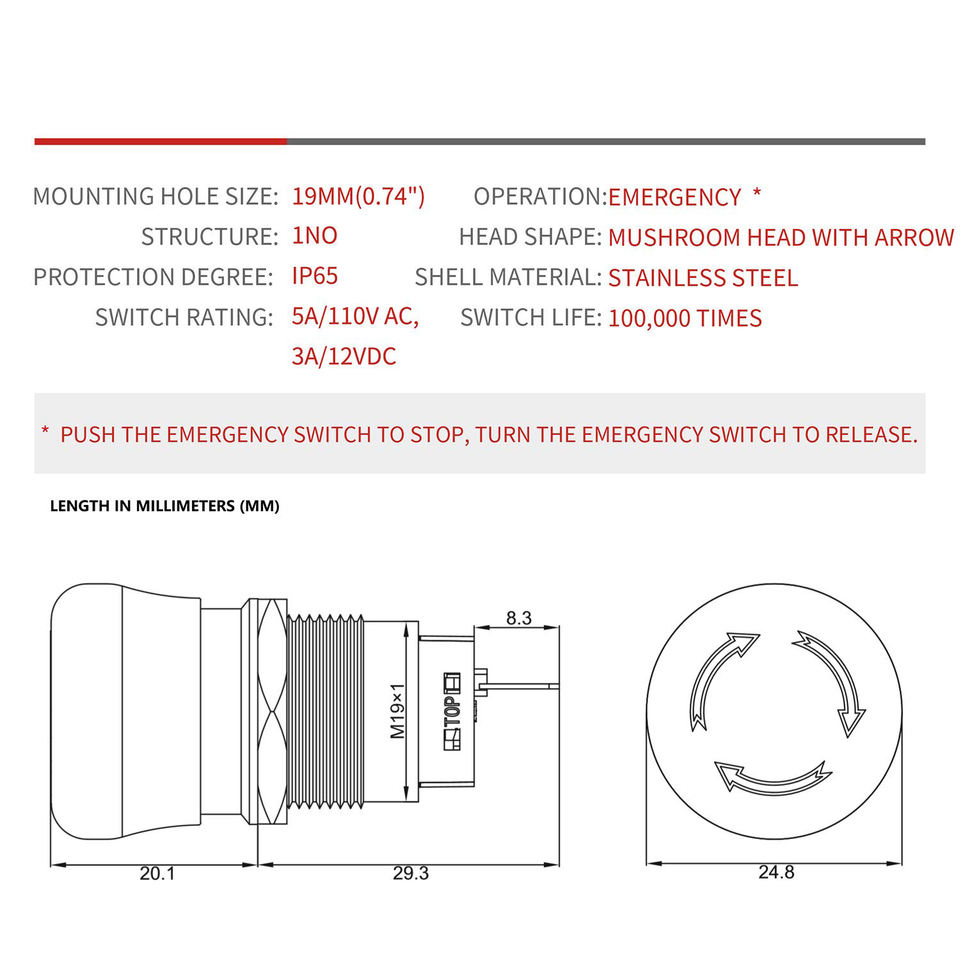 Bouton d'arrêt d'urgence en acier inoxydable/aluminium IP65 pour machines industrielles, commande de moteur CNC, sécurité