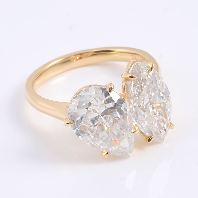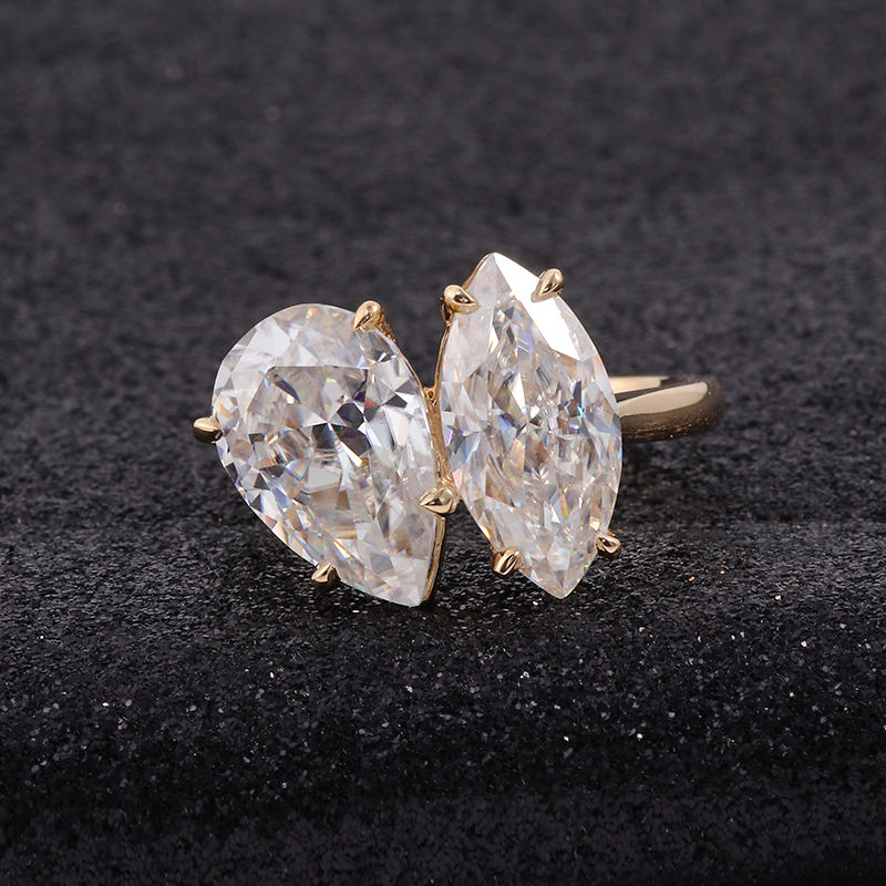 Bague de mariage tendance en or, ornement géant en deux pierres, momanite ou de laboratoire, diamant de 10, 14 et 18k