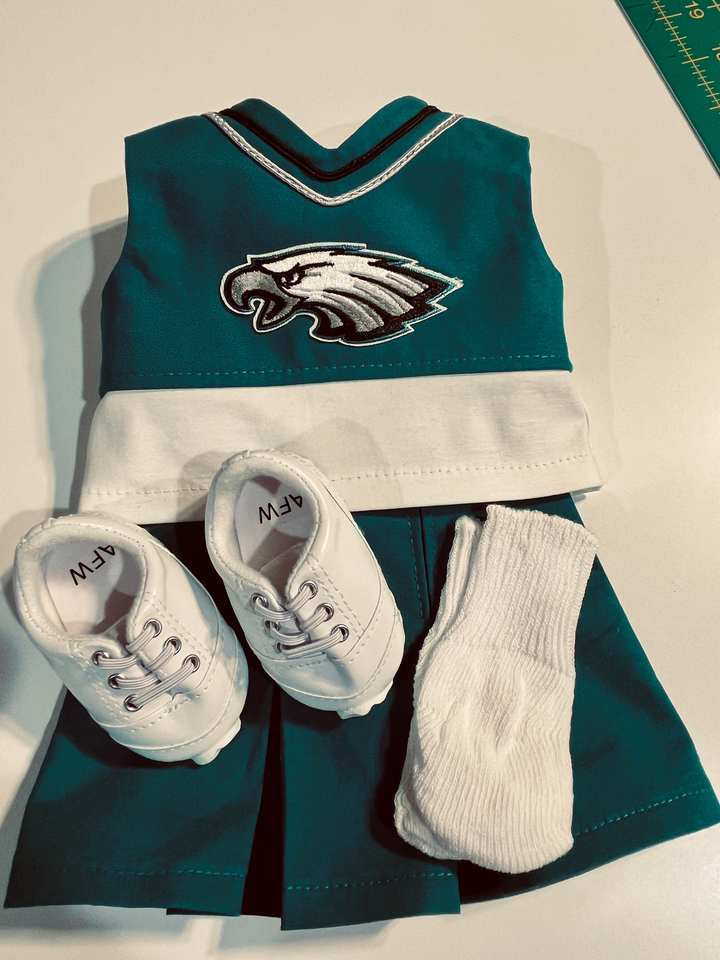 Ensemble cadeau uniforme de cheerleading moderne Emily Rose de 14 pouces, 6 pièces, chaussures de gymnastique pour poupée et accessoires pompons pour femmes (spandex/polyester)