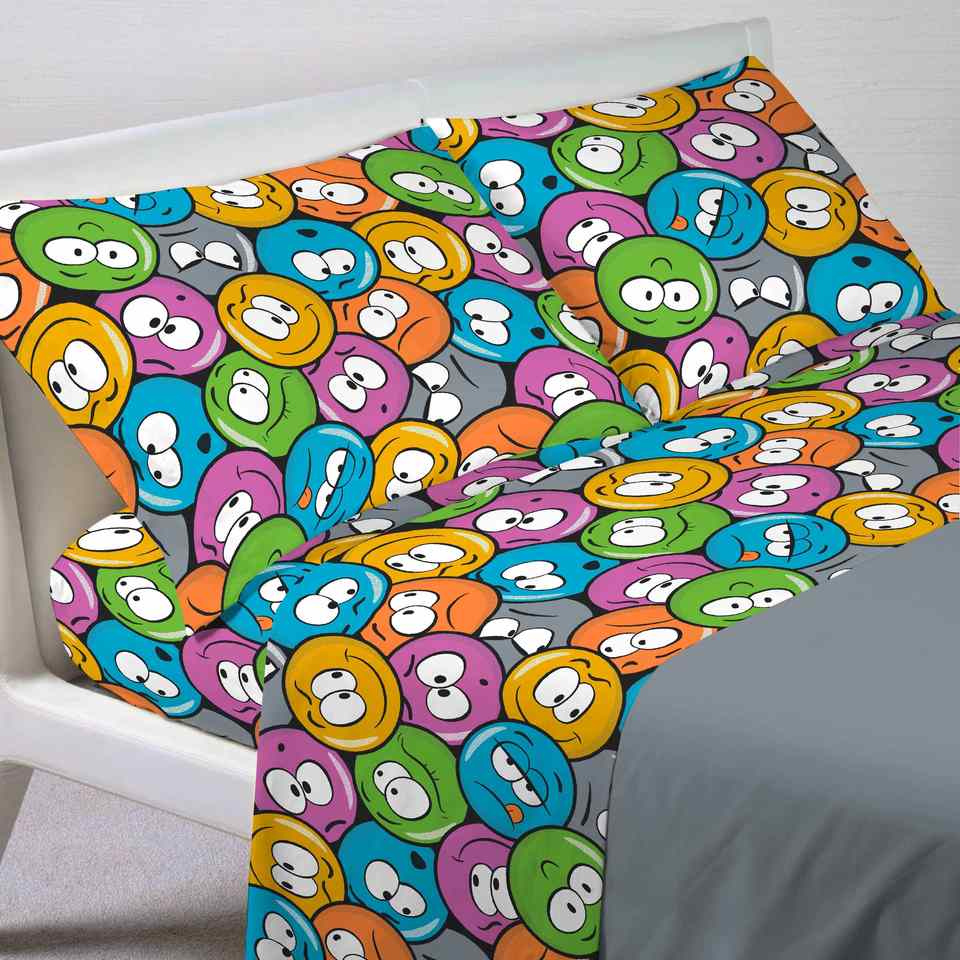 Parure de draps imprimée avec émoticônes, 100 % coton, taille double allemande, taies d'oreiller incluses
