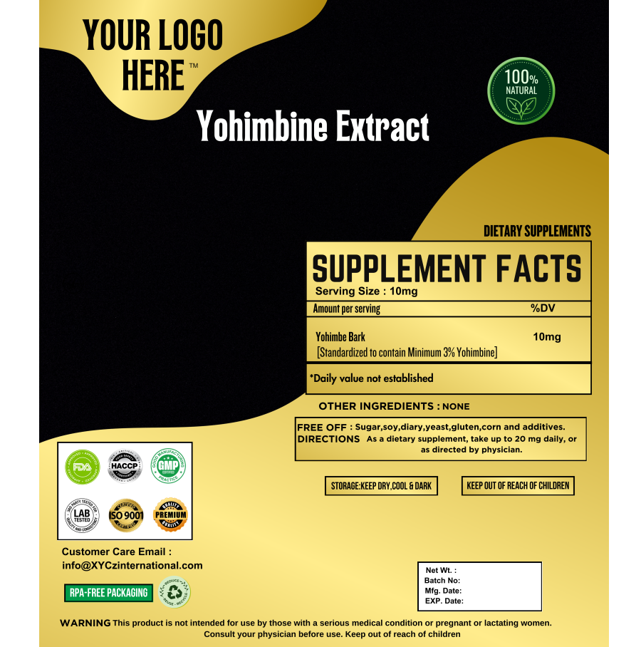 Soulignant l'origine et la qualité de la poudre d'extrait de yohimbine approvisionnement en vrac et en gros de qualité supérieure du fabricant indien