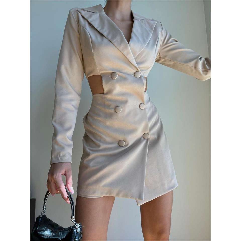 Robe courte de style occidental à taille empire avec fentes, longueur genou, taille unique, hiver, printemps, automne