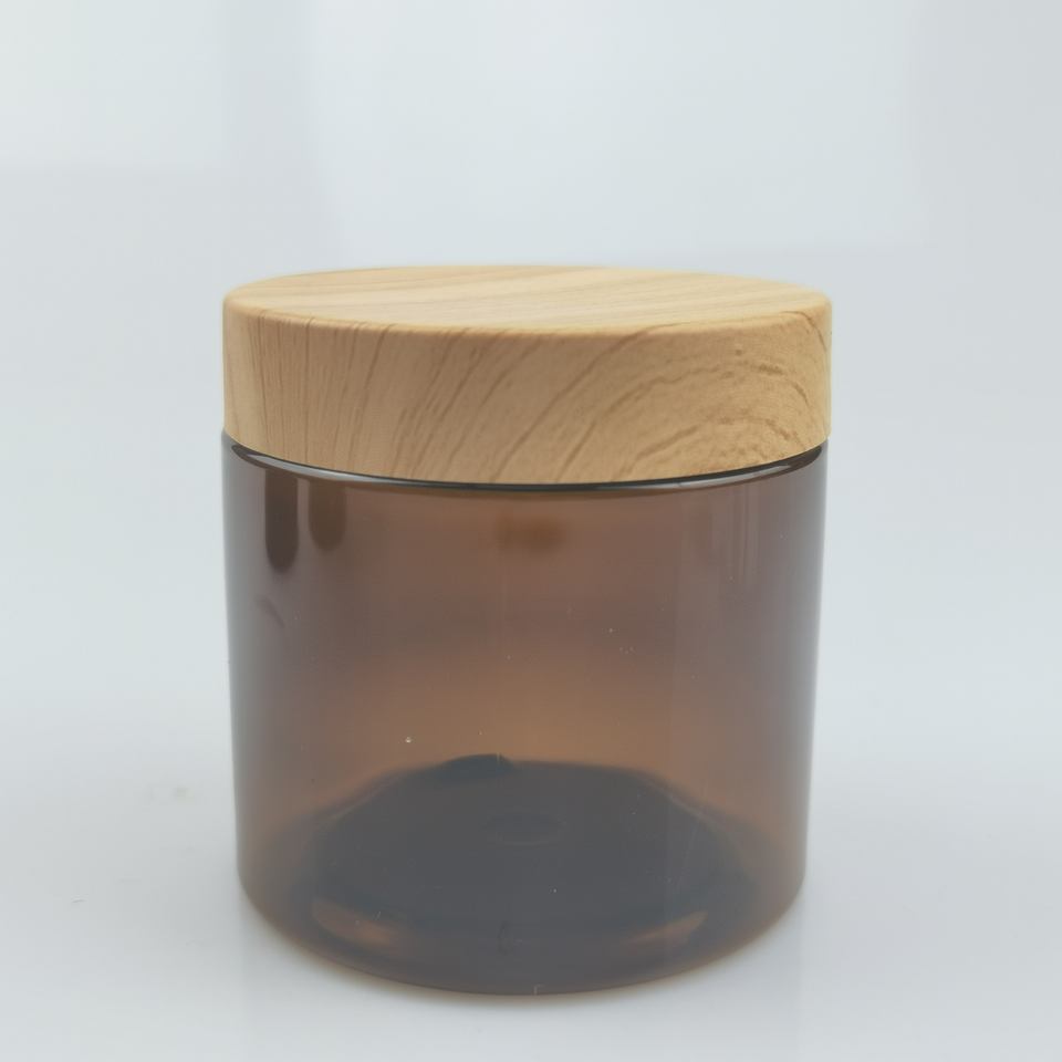 Pot en plastique PET à large ouverture de 100 ml, 150 ml, 200 ml, 250 ml, 500 ml, vide, avec couvercle en bambou, pour crème cosmétique, beurre corporel.