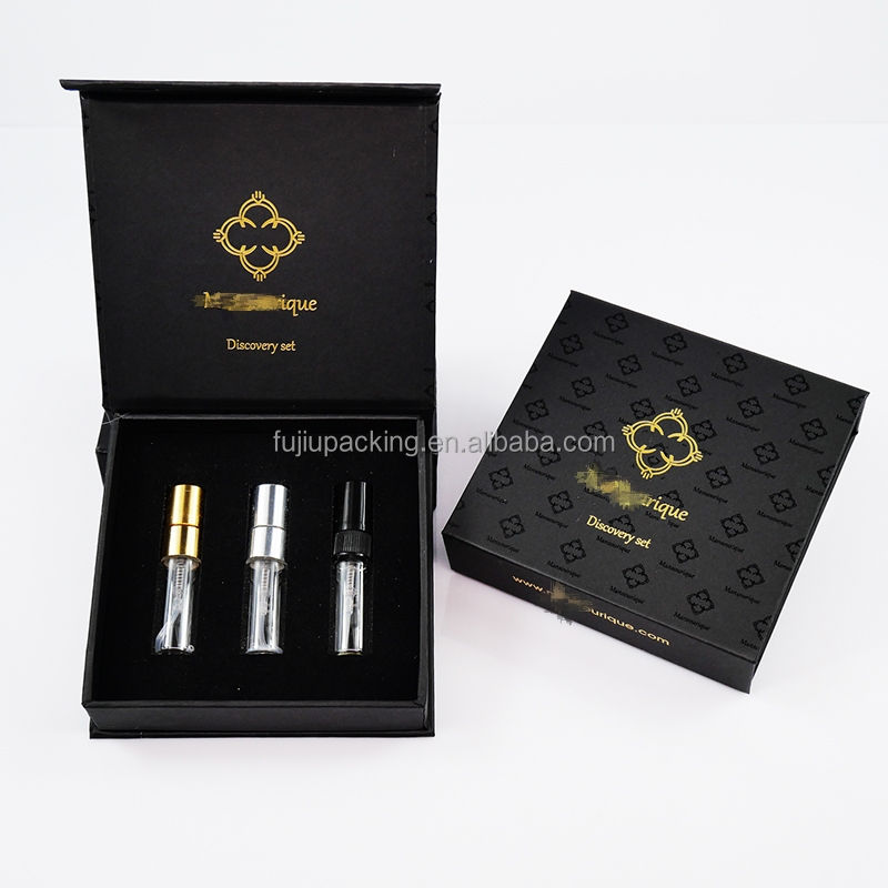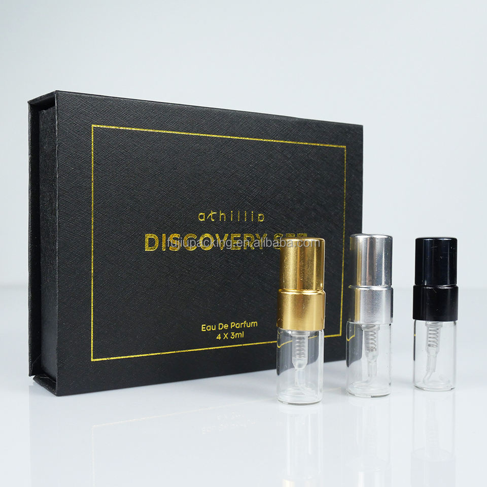 Flacon pulvérisateur miniature vide de 2 ml, 3 ml, 5 ml, 10 ml, flacon de parfum en verre avec bouchon doré, argenté ou noir et boîte en papier