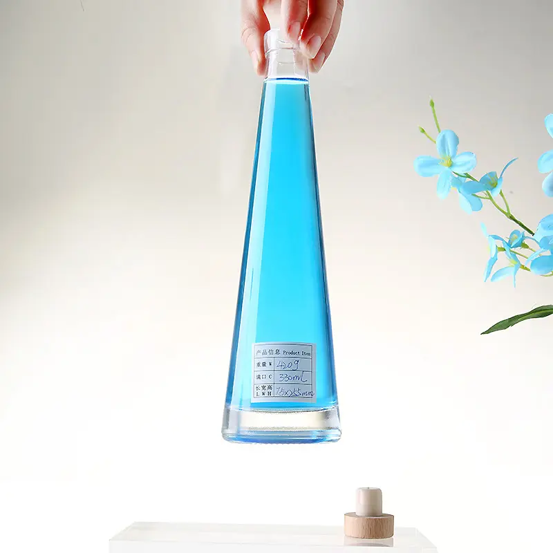 Silex vide, étiquette personnalisée, Triangle forme alcool 330ml jus bouteille en verre minéral vente en gros