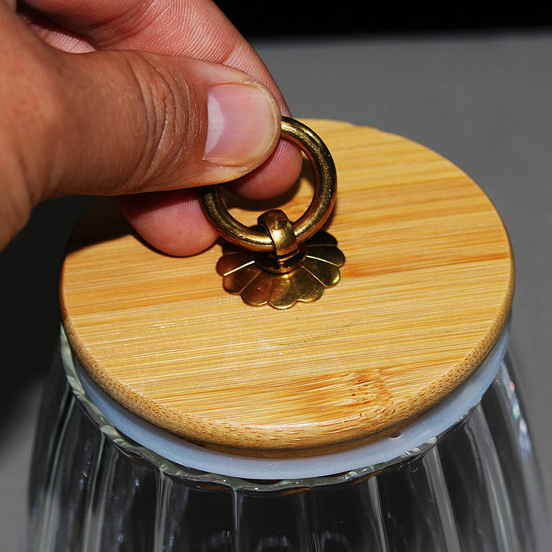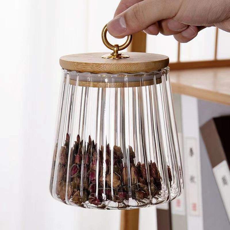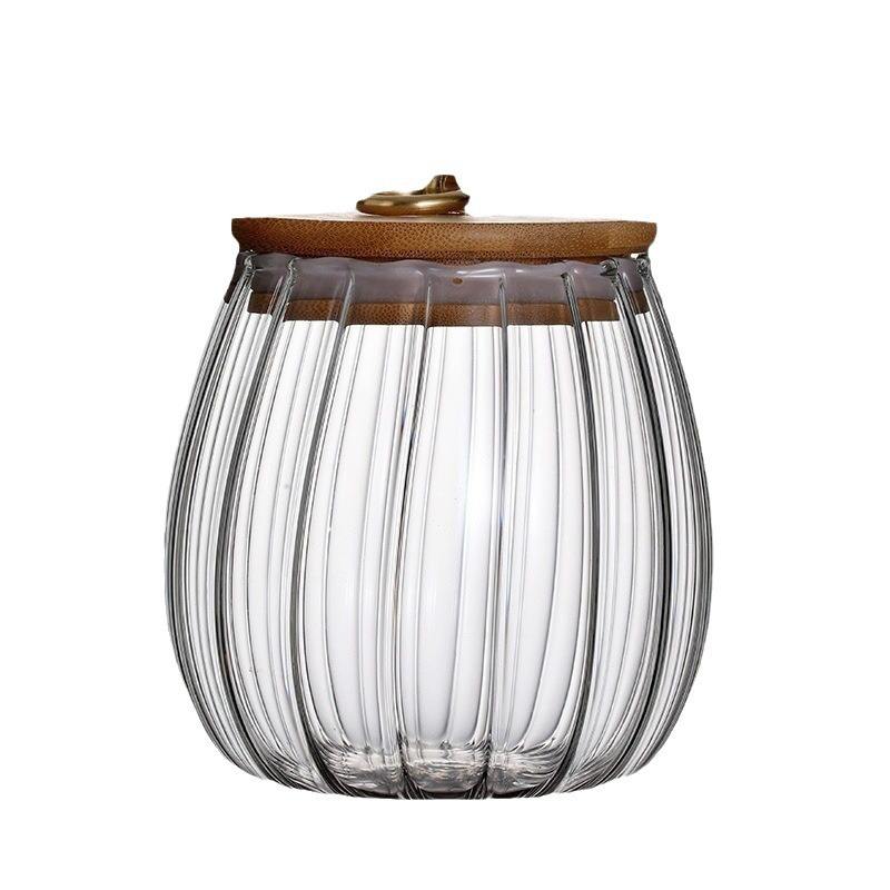 Conteneurs de stockage en verre vides Bocal en verre de cuisine unique à haute teneur en borosilicate résistant à la chaleur avec couvercle en bois