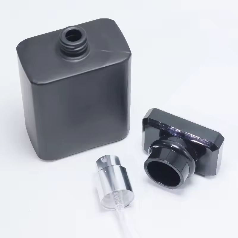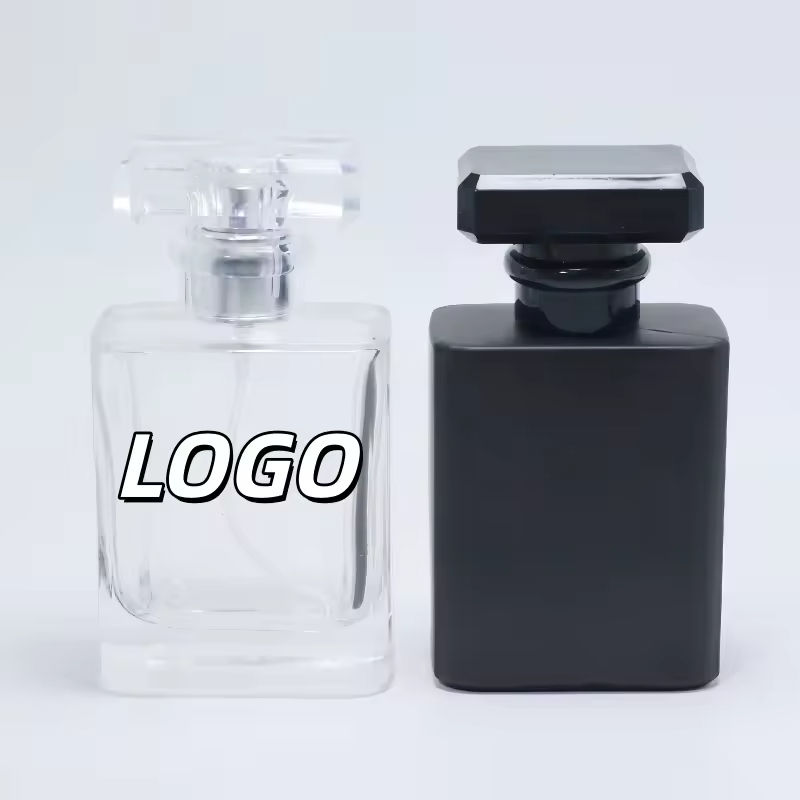 Flacon de parfum vide de luxe personnalisé transparent noir avec pompe, 30ml, 50ml, 100ml