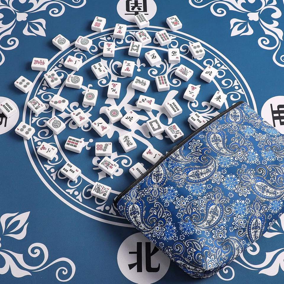 Sac vide pour tuiles de mahjong, adapté aux tuiles de mahjong américaines de taille standard de 1,2 pouces, sac imprimé bleu épaissi