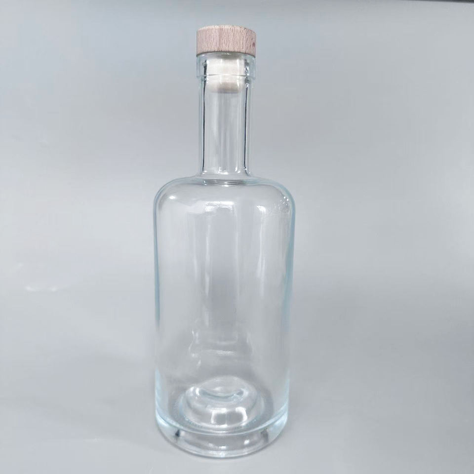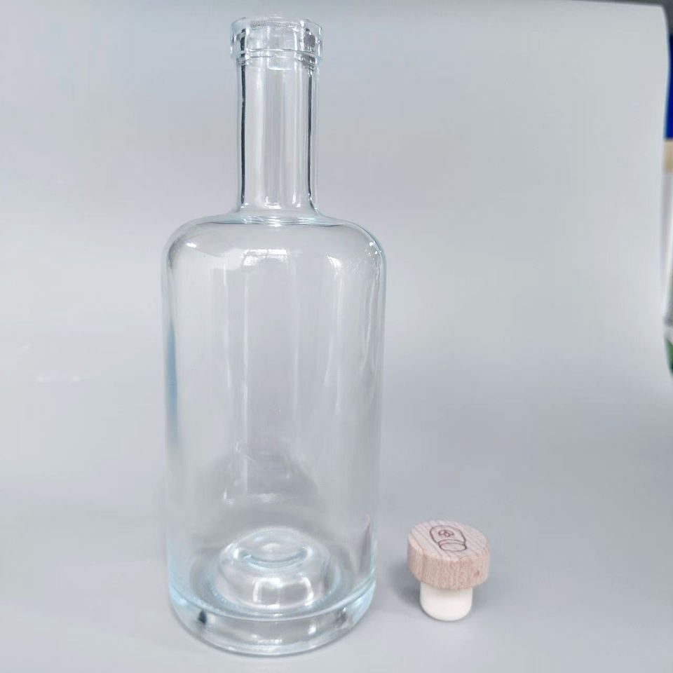 Bouteille en verre ronde vide à long cou Vodka Brandy Whisky Rhum Gin Spirits Bouteille avec liège 700ml
