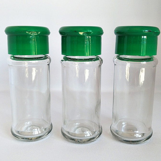 Empty clear 100 ml Glass Seasoning Bottle Round Glass Bottle with Plastic Flip-top Lid for Salt and Pepper, Ex-factory Price