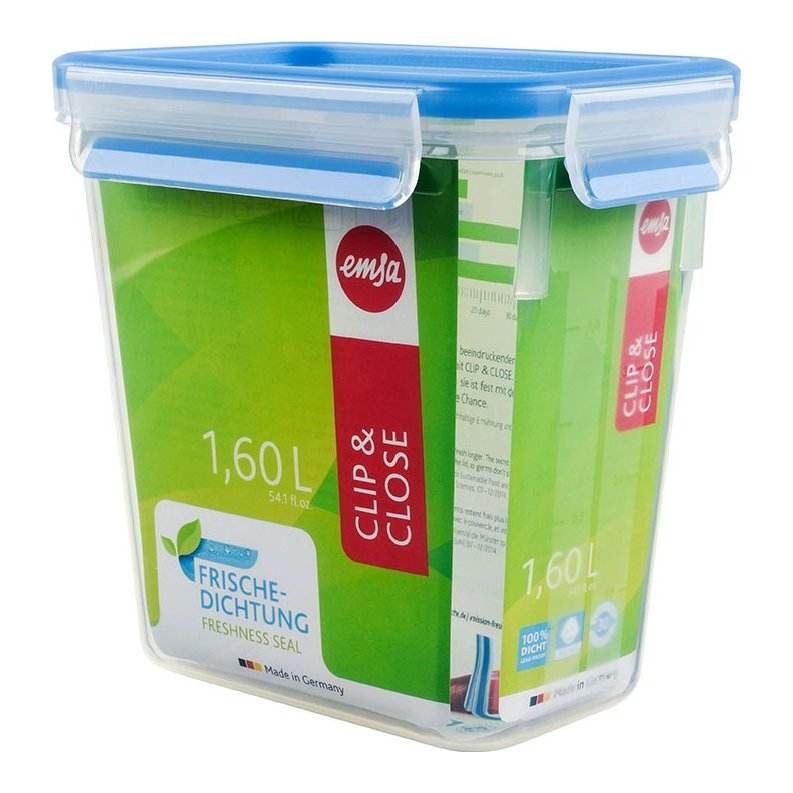 Conteneur alimentaire Emsa 1,6 L bleu et transparent avec fermeture à clip pour le rangement et l'organisation, modèle 508543