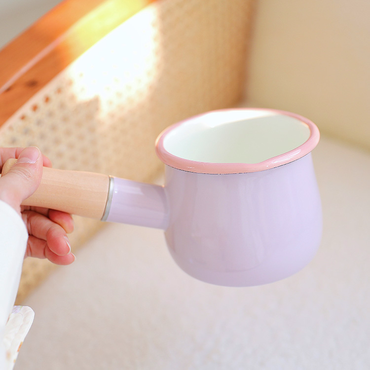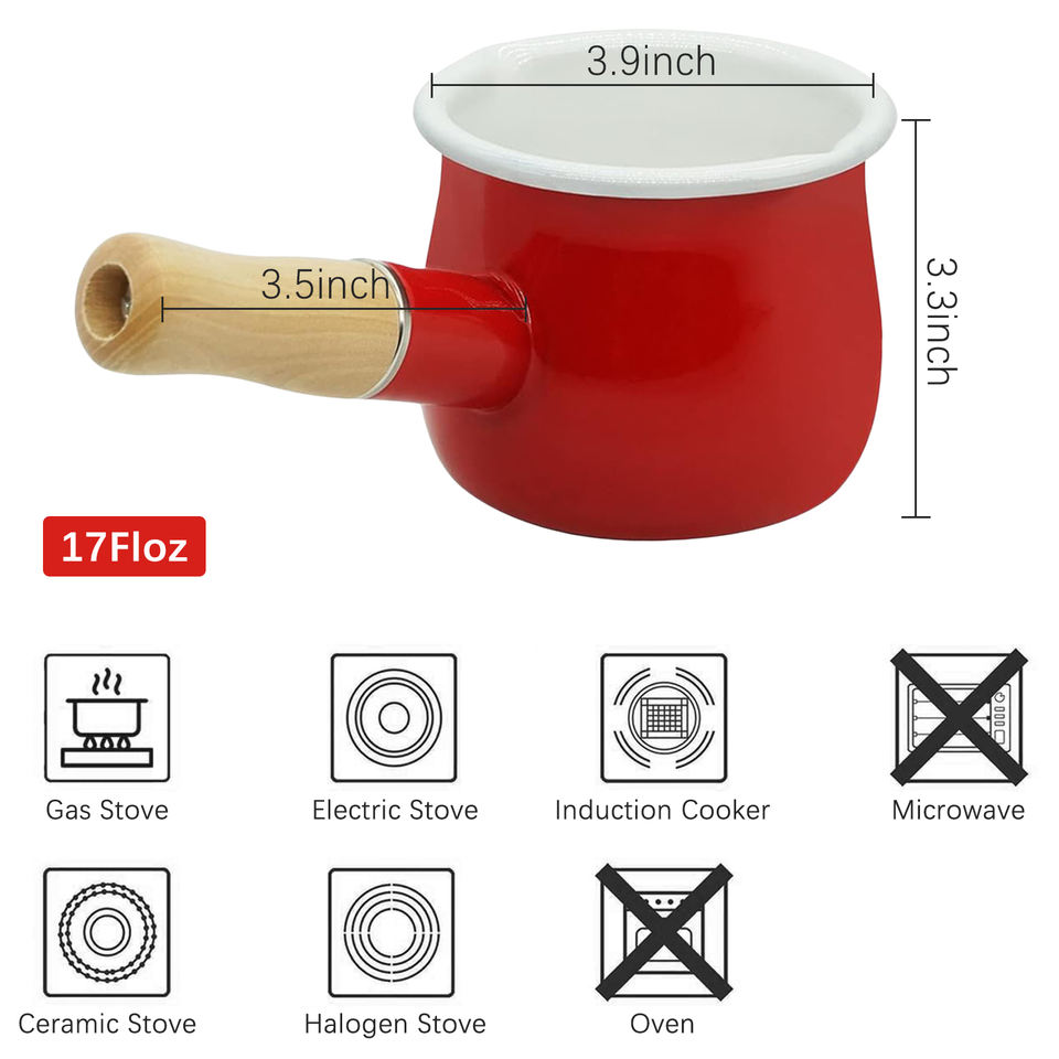 Réchauffeur de beurre émaillé antiadhésif en métal conception mignonne petite bouche versant des liquides alimentaires sauce chauffante 550ml Mini marmite en fonte