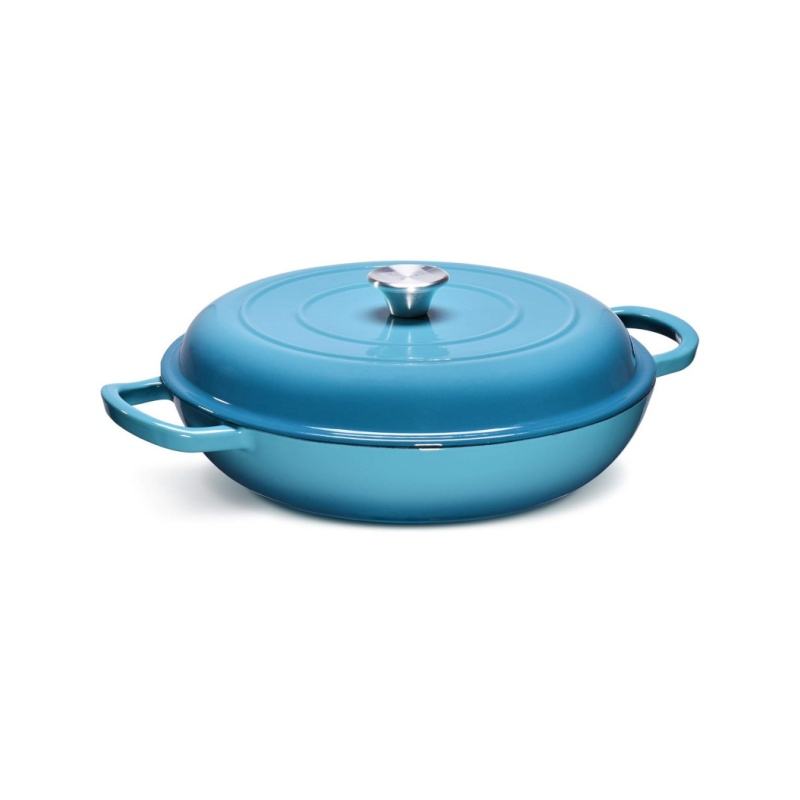 Casserole en fonte émaillée, braisoirs, antiadhésif, émail de qualité supérieure, casserole peu profonde en fonte émaillée
