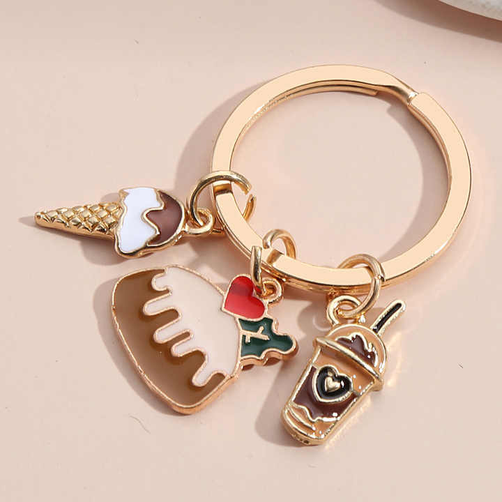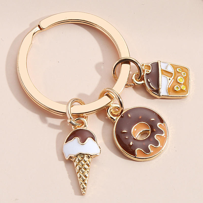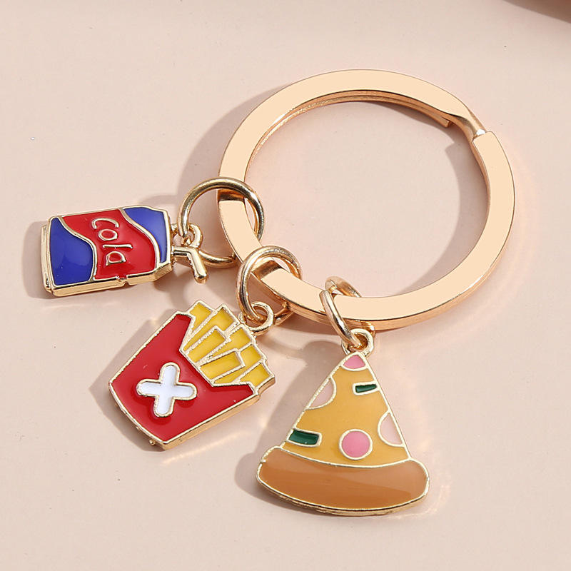 Enamel Cute Food Metal Key Chains Cartoon Bread Cake French Fries Cheese Sandwich Donut Hamburger Hot Dog Ice Coffee Keychain
