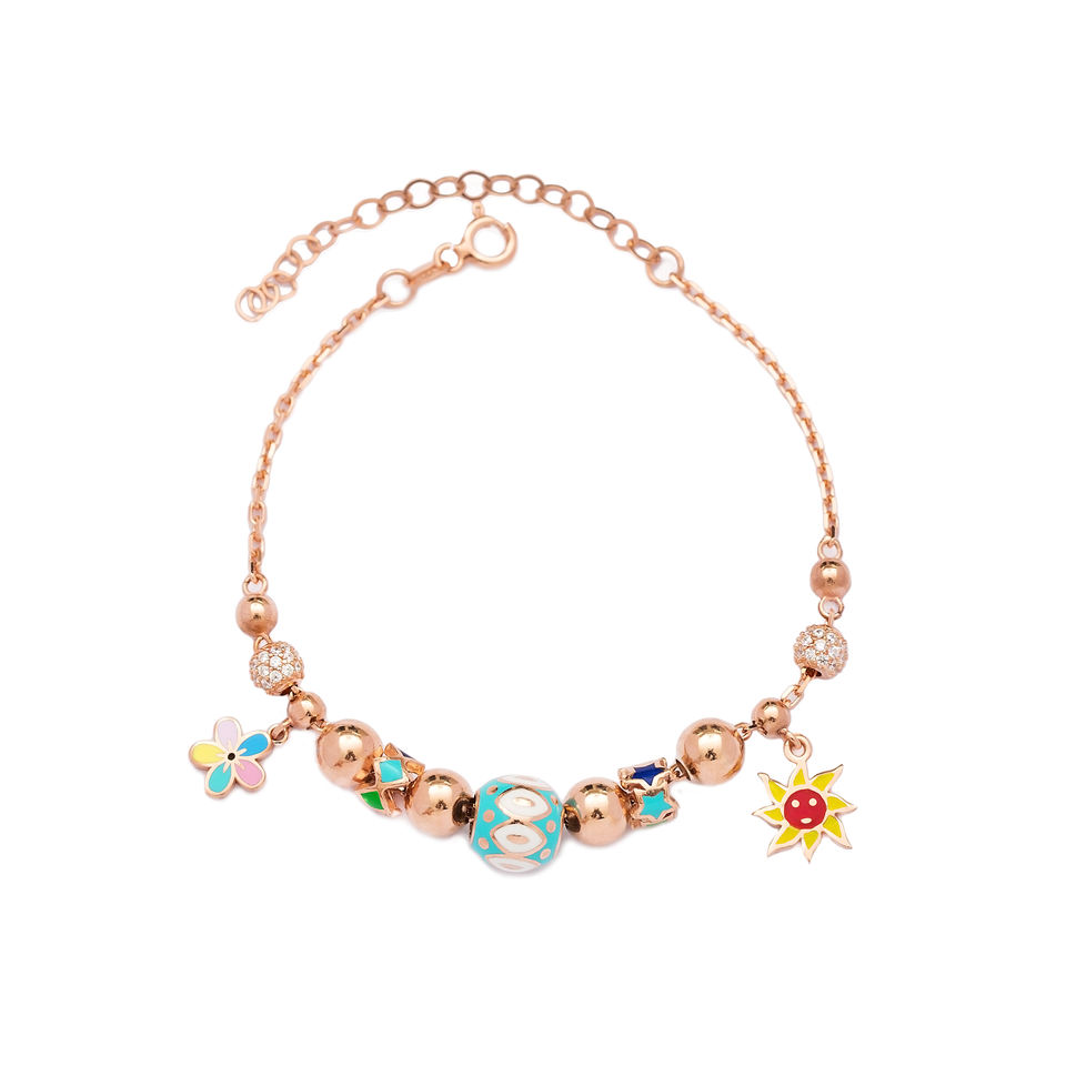 Bracelet à breloques en forme de soleil et de fleurs en émail Trendy Shaker Wholesale 925 Sterling Silver Handmade Jewelry Fine Jewellery