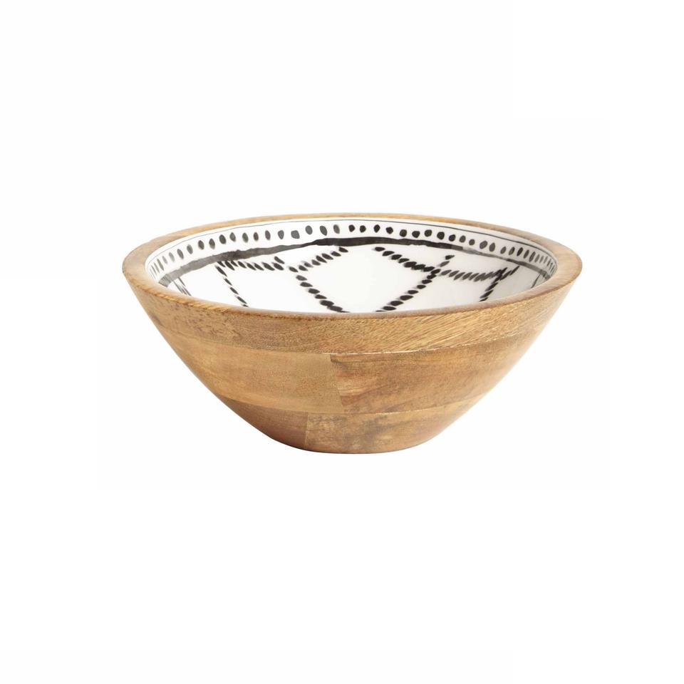 Accueil Hôtel Vaisselle Décoration Salade arrondie Bol de service pour fruits secs et noix Finition émaillée Bol en bois