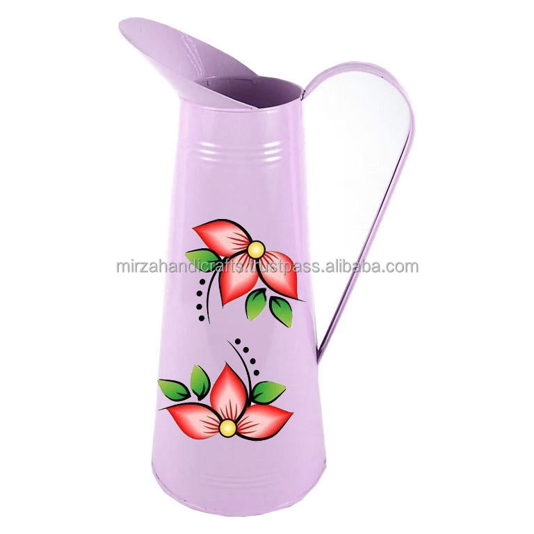 Pichet à boire galvanisé émaillé Décor de cuisine et de table Poignée en métal Pichet artisanal décor de ferme