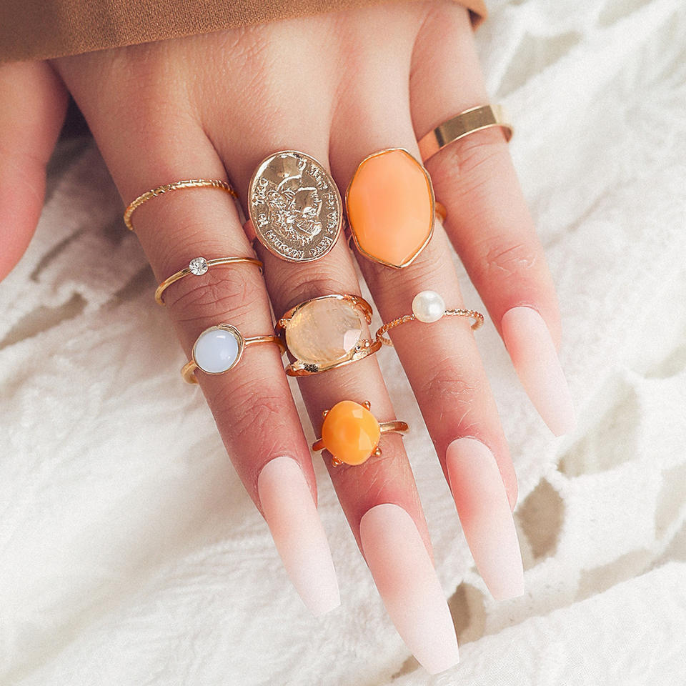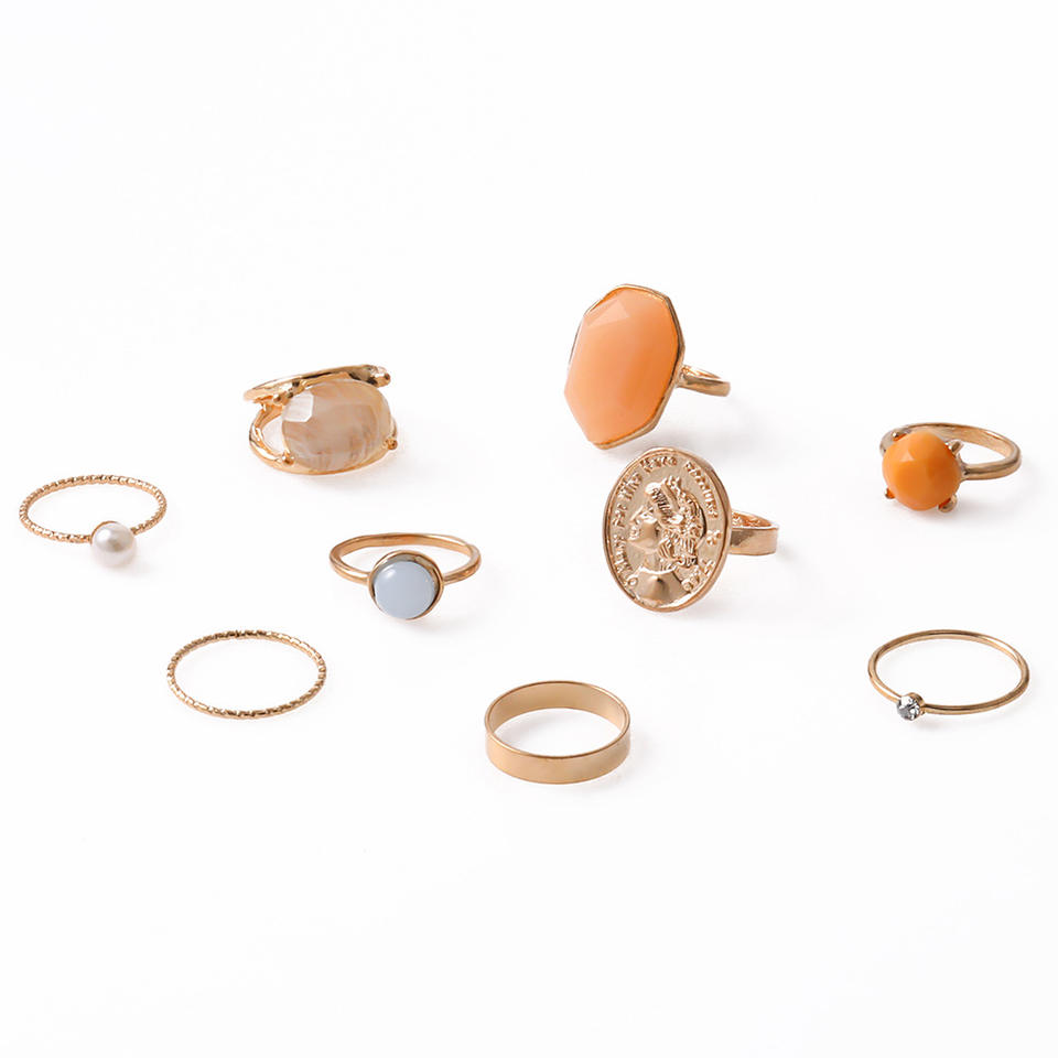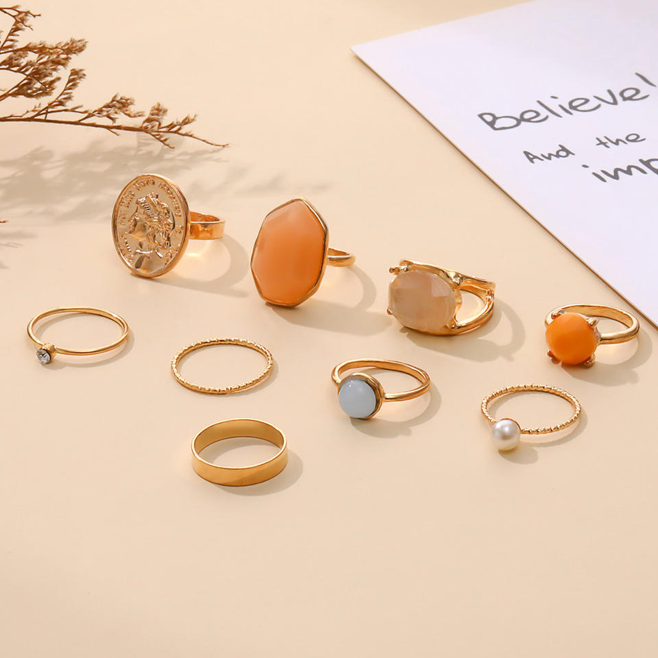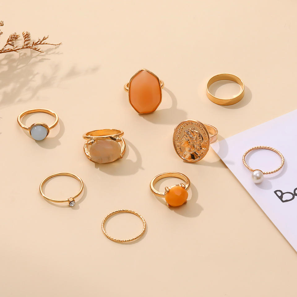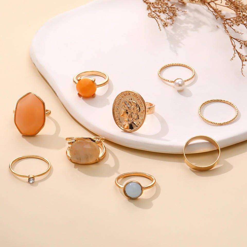 Ensemble de 9 bagues Mairi en alliage émaillé avec portrait en relief, créatives, minimalistes, baroques, rétro, couleur gelée, pour femmes