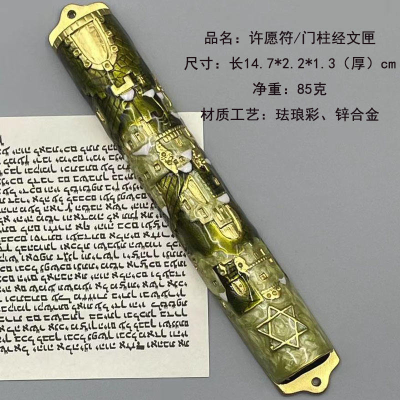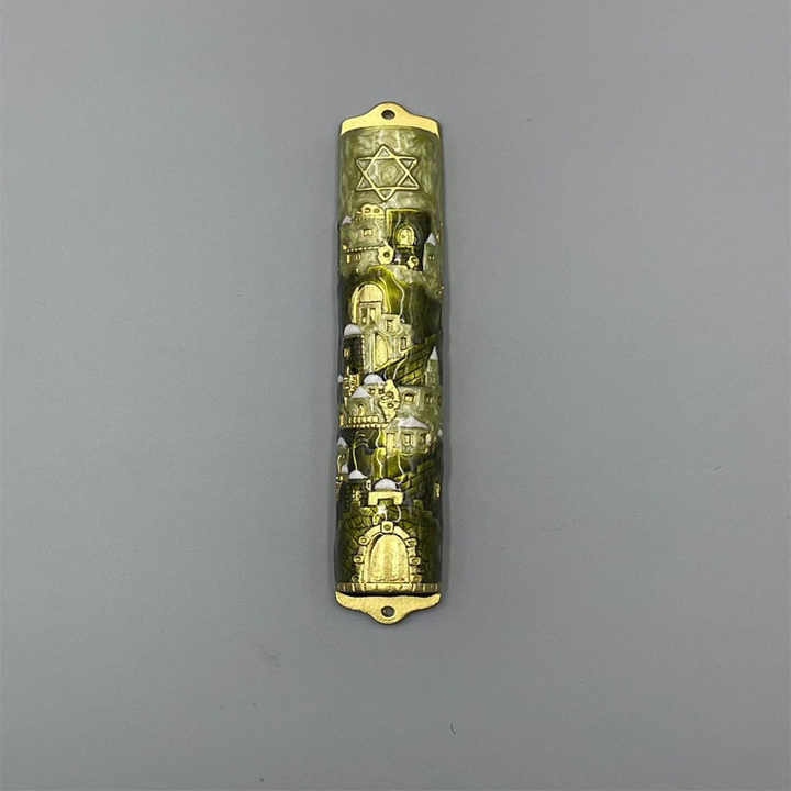 Étui à Mézouza Messianique en Émail avec Parchemin de Jérusalem, Judaica pour la Maison