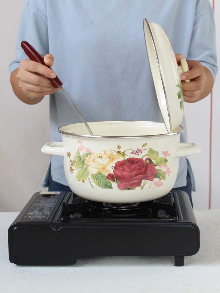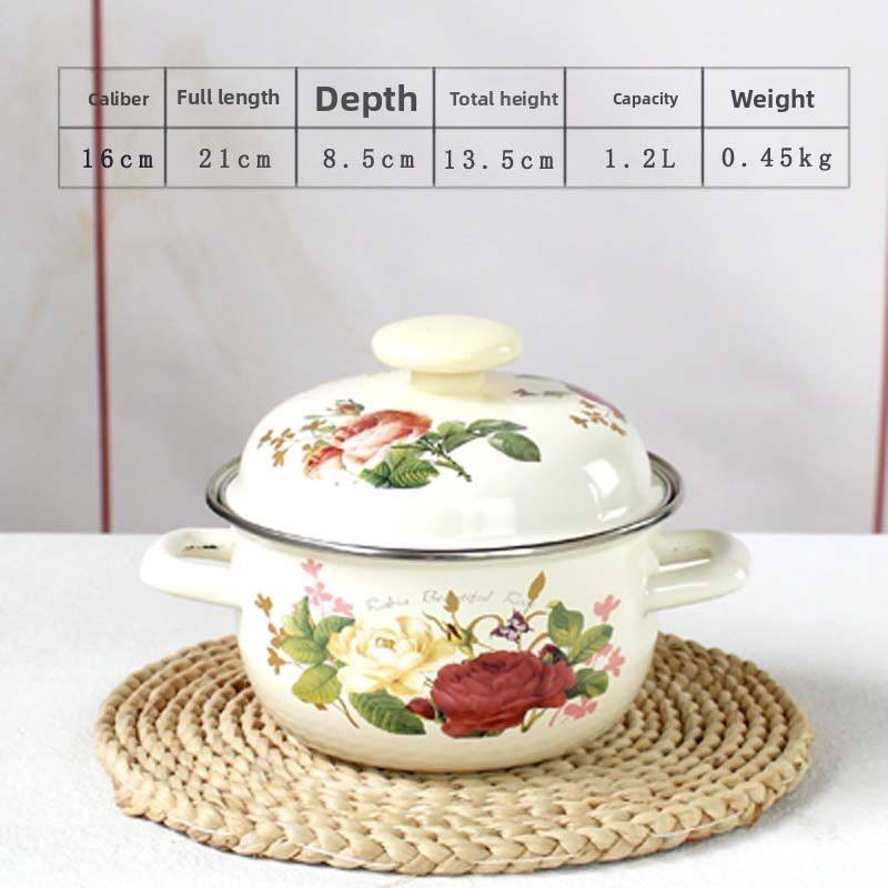 Bol en porcelaine émaillée haut de gamme à motif floral vintage, avec couvercle et double poignée, pour soupe, graisse, huile et usage alimentaire domestique