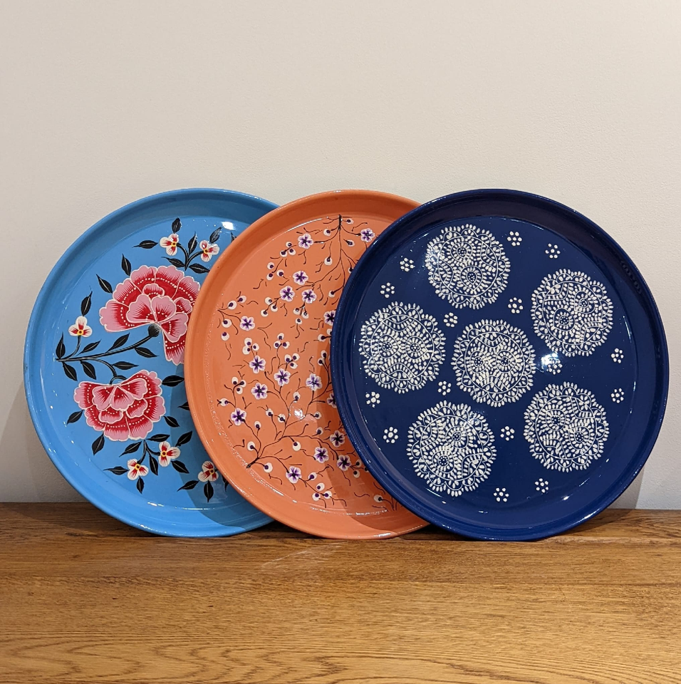Plaque en acier inoxydable imprimée en émail Plaque de chargeur Artisanat Royal Design Dîner utilisé