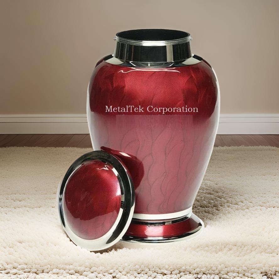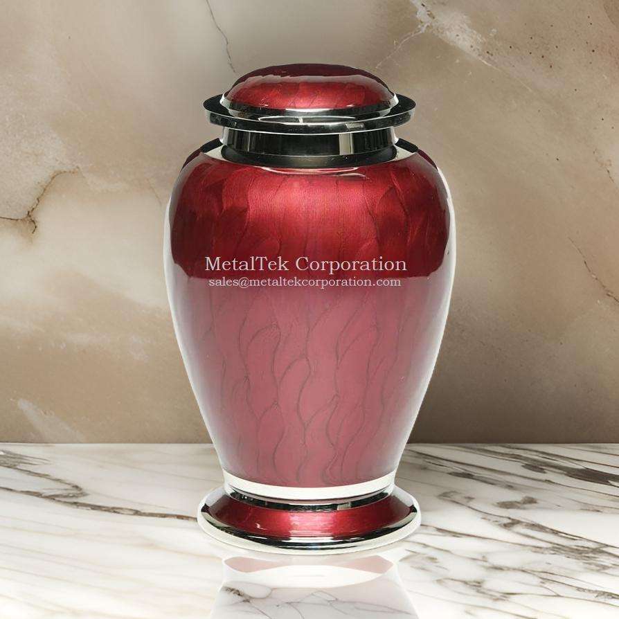 Urne funéraire américaine en émail rouge pour cendres, fabriquée à la main, personnalisable, capacité de 200 pouces cubes, prix de gros, prix bas, pot funéraire
