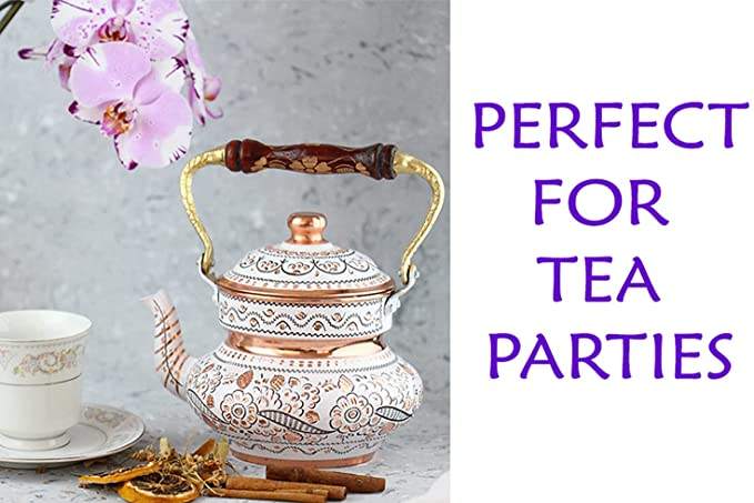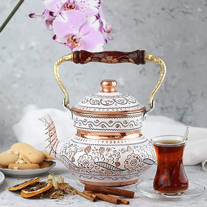 Bouilloire à café polie en cuivre au design émaillé Théière la plus vendue avec manche en bois Bouilloire de cuisine en cuivre design