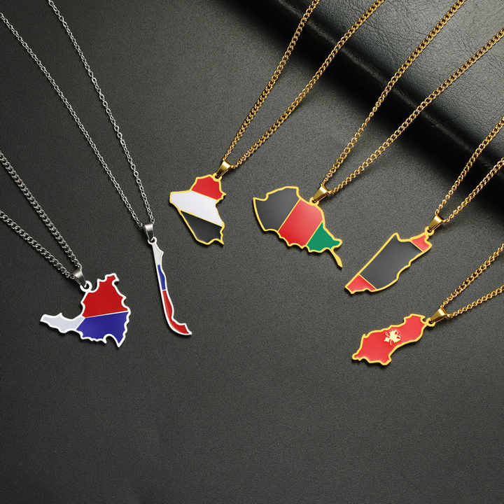 Collier chaîne avec pendentif drapeau émaillé de pays du monde, en acier inoxydable argenté et plaqué or 18 carats