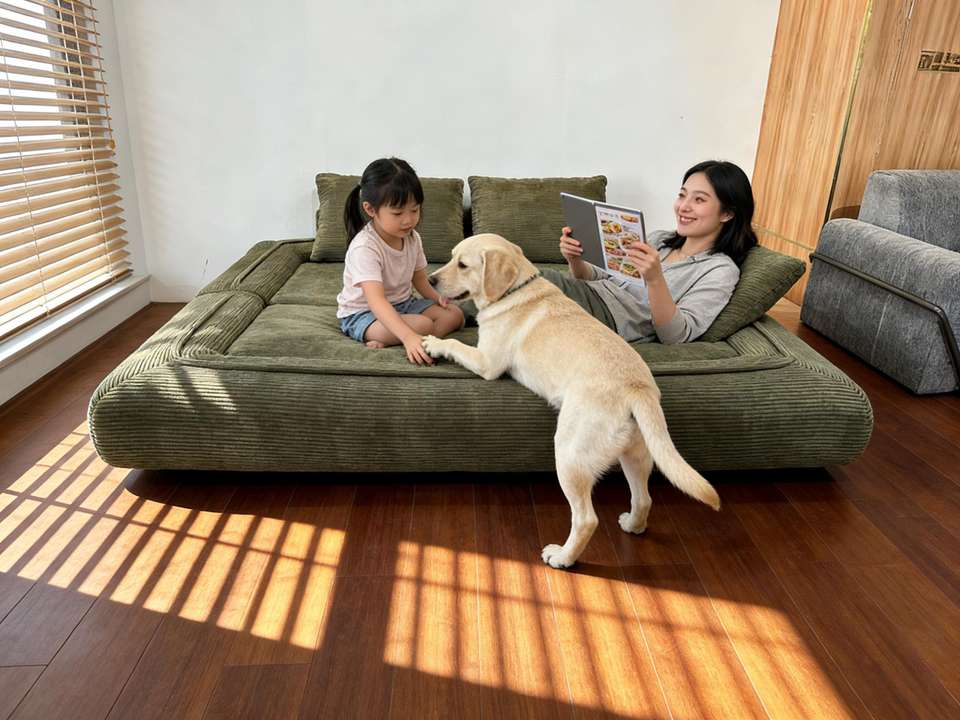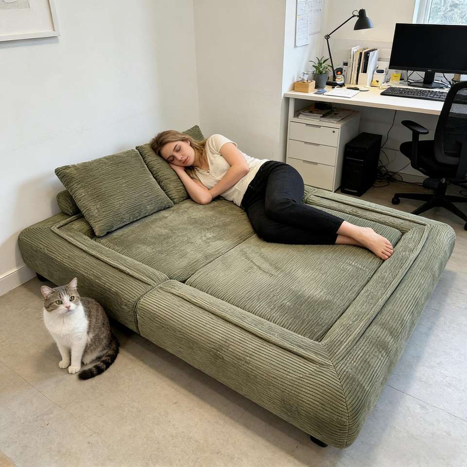 Canapé-lit fermé avec oreiller réglable, résistant aux rayures, en velours côtelé olive foncé, canapé compressé, immersion relaxante, repos parent-enfant, repos pour animaux de compagnie