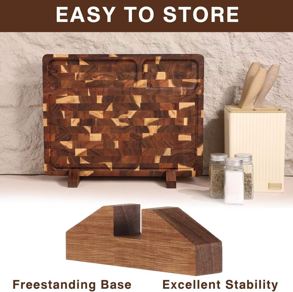 Planche à découper en noyer à grain traversant, double face, réversible, pour charcuterie, avec support