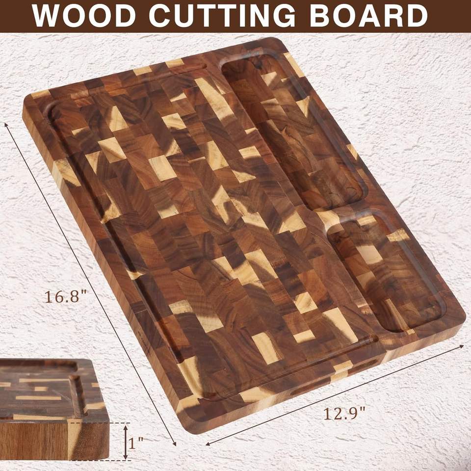 Planche à découper en bois robuste, pré-huilée, avec rainure à jus pour la décoration intérieure.