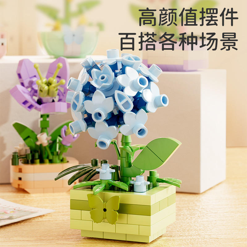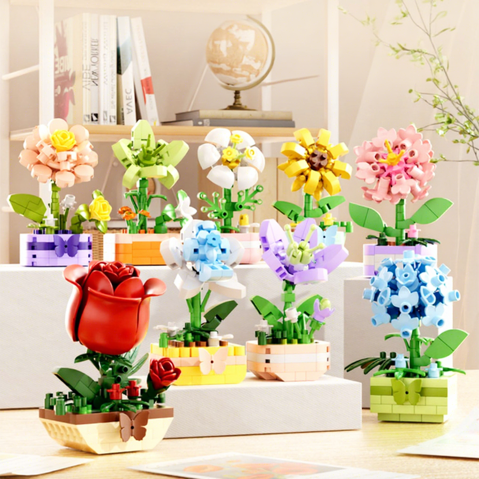 Blocs de construction en forme de plantes énergiques en pot, 400-800 pièces, jouet d'assemblage et de démontage DIY, design zen asiatique pour la décoration