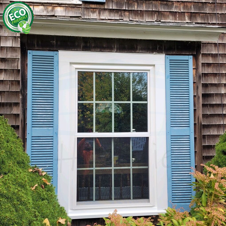 Fenêtre coulissante verticale minimaliste en alliage d'aluminium à double battant avec verre noir, à haute efficacité énergétique