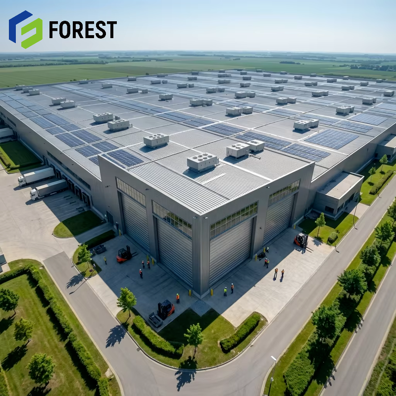 Bâtiment en structure métallique écoénergétique avec panneaux isolants pour entrepôt frigorifique