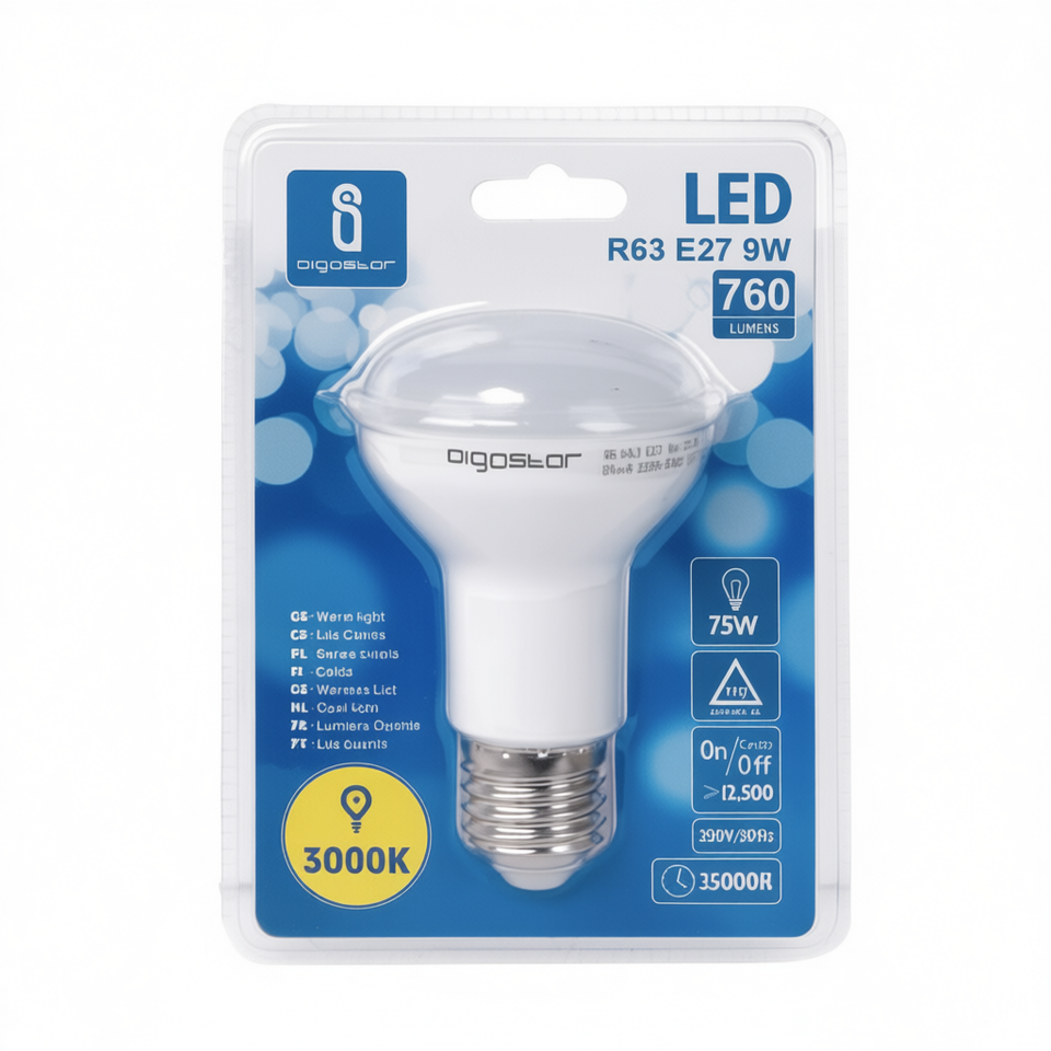Ampoule LED A5 R63 E27 à économie d'énergie 9W 3000K